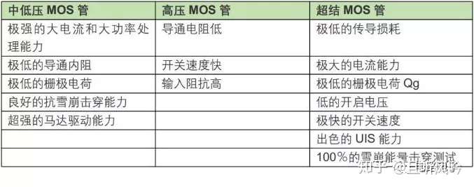 我们在使用MOS管时可以根据不同的需求来选择不同型号的MOS管。如果我们需要使用MOS管承受大功率,那么中低压MOS管是我们最佳的选择。如果我们想要使用MOS管代替三极管最为开关管,并且要求极高的相应速度,那么高压MOS管不失为明智的选择。具体种类MOS管对应的特性如下表所示。