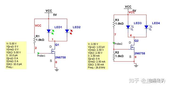 当我们使用Pmos时,PMOS的特性是,VGS小于一定的值(3V以上)就会导通,适用于源极接VCC时的情况(高端驱动)。