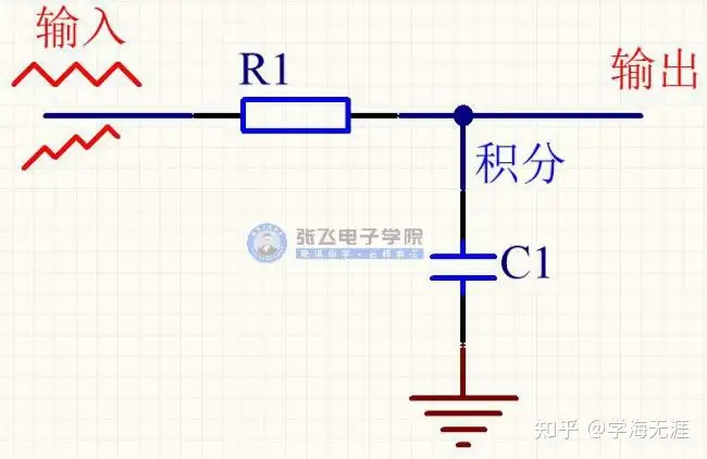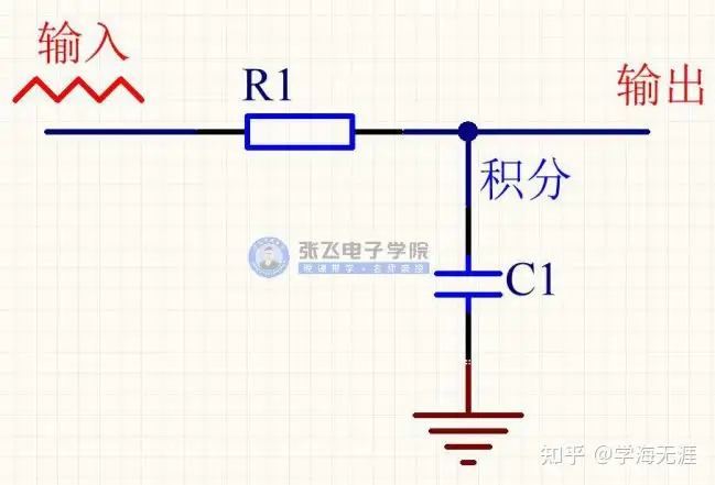那么,上面的C14电容就是对应刚才讲的积分电路的形式了,R17 和C14构成了RC积分电路。在硬件电路中,I 一般都是用电阻和电容做一个RC低通滤波电路。在积分电路中,R的取值一般是K级或百欧姆级别的,C的取值一般是nF级的比较多,当然不同的系统取值也会不一样。
