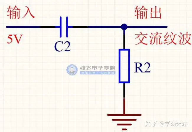 上面这幅图实际上反应的是一个电流的变化量,通过电压的形式体现出来的。那么,当输入一个稳定的5V直流量是体现不出来的,只有当输入5V电压出现变化的时候,那么反映在电容上的电流是有差异的,也就是输入电压量变化的快,则电流相对较大;输入电压量变化的慢,则电流相对较小。其实这就是微分的思想了。需要注意的是,输出信号需要对地接一个电阻或者是等效电阻。