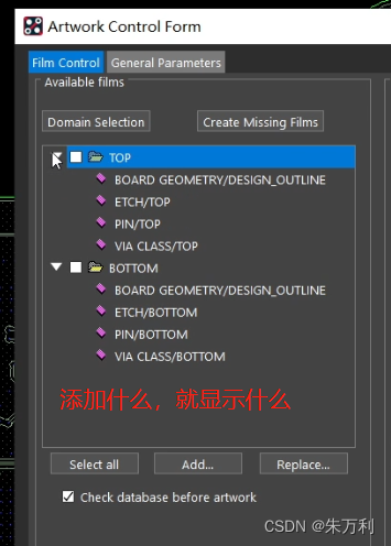 依次再增加其他线路层,如PWR02、GND03等,每层添加时先在option面板勾选对应的层,然后光绘线路层时会自动弹出走线、pin、过孔、板框四种元素,点击OK即可。