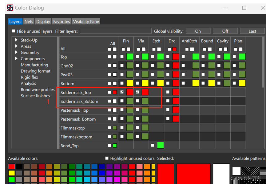 同样,在颜色管理器中只打开板框和所有阻焊层,
