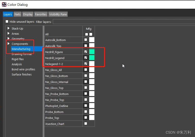 先到颜色管理器将不需要显示的元素关闭,只打开板框,易于添加光绘层叠。