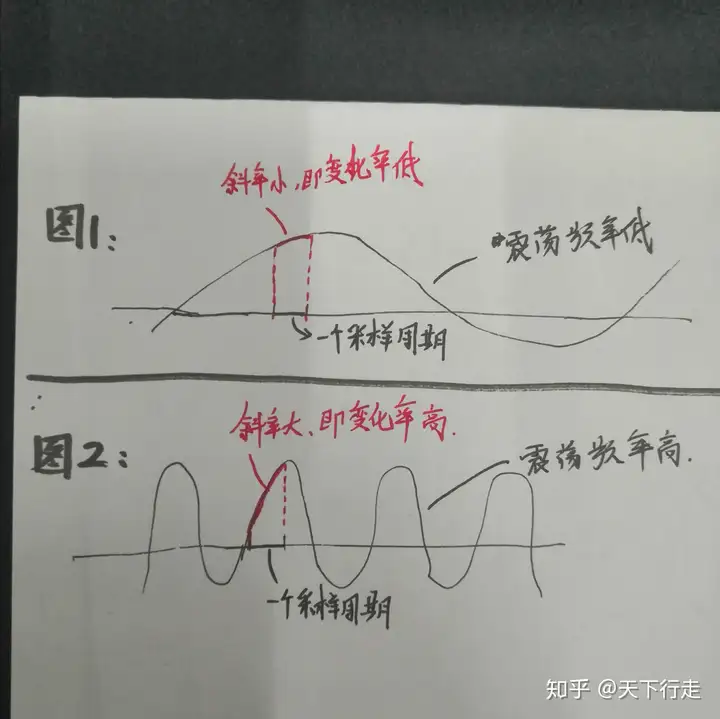 首先,震荡的产生一般是因为,Kp设置过大导致比例项单位输出过大,导致输出过量而产生震荡。那么注意此时系统响应速度也就非常高,即震荡频率不低。而震荡频率越高,我微分项在一个控制周期(或者叫采样周期)内捕获到的偏差变化率也就越大。那么我微分项输出也就越大,相应的就会削弱更多的系统输出。此时输出被削弱就不会导致单位输出过量,也就是说震荡就会减小了。(不知道大家能不能边看文章边想象,波形和输出的关系。。。等我晚上回去画一张图,以便于大家理解。)