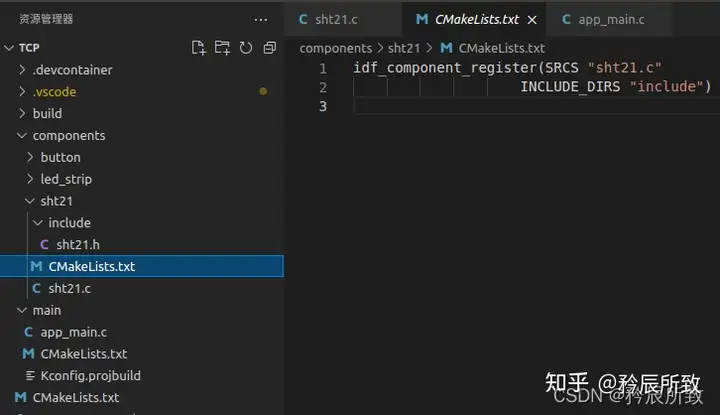 但是在实际操作时候,我们大多数情况下都是直接在 main.c 文件中添加应用代码,遇到复杂一点的项目多一点驱动文件,工程结构就显得很乱,不规范并且不方便移植。在上面 ESP32-C3 应用篇提到的工程中,我确实也遇到了文件添加的问题,所以为了避免这种基本问题的困扰,得好好的了解一下 ESP-IDF 工程结构。