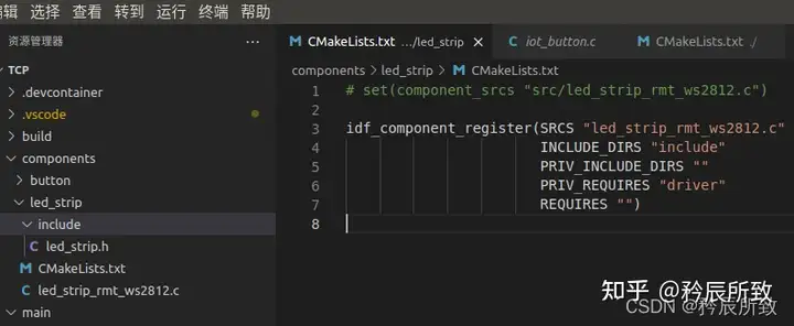 LED驱动其实在前面 RMT应用 教学博文中使用过,不过当时是使用的官方例程为模板生成的组件,所以并没有关心结构,但是在我写应用篇的时候,把组件拷贝到本项目下面直接编译确实有错误,所以当时才会直接放置 button 文件夹下面 = =!