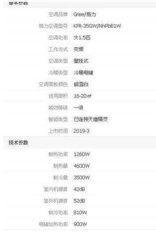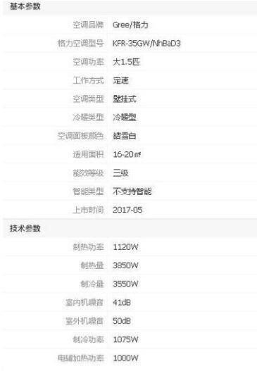 空调的能效比=制冷功率/输入功率。下面以同品牌的同款式的一级能效和三级能效来进行对比,都是大1.5P的壁挂式空调。