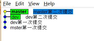 合并后git log查看,提交历史是以最新dev2分支为基础的,master自己的提交记录在新基础的后方。即线性提交,这样看起来很舒服