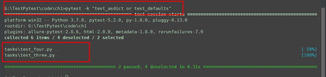 2、-k 选项允许你是用表达式指定希望运行的测试用例
