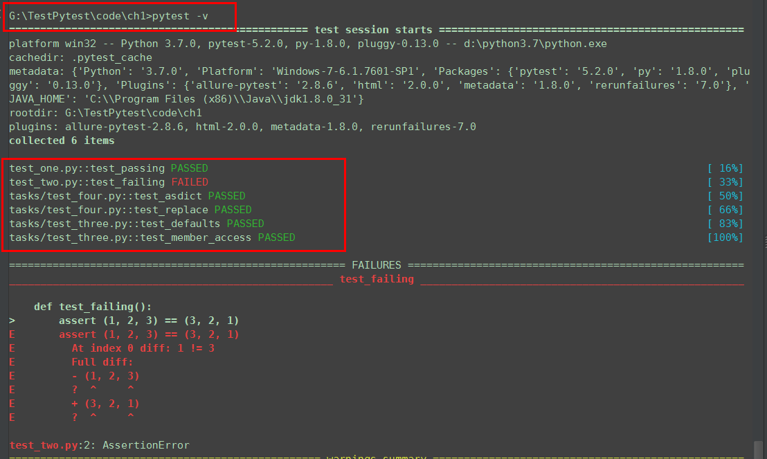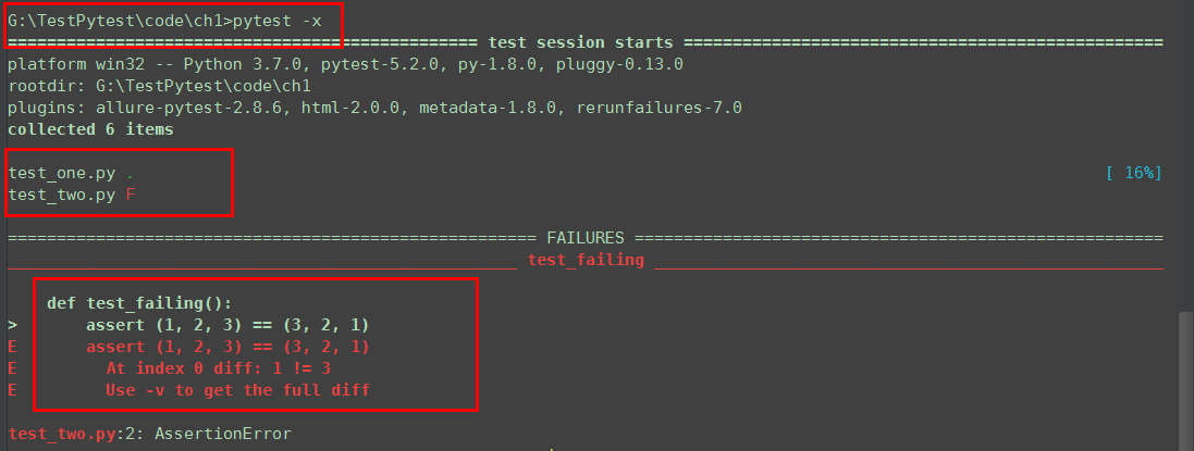 12、--tb=style选项决定捕捉到失败时输出信息的显示方式,pytest会列举出失败信息,出现哪一行,是什么失败,怎么失败的,此过程我们称之为“信息回溯”