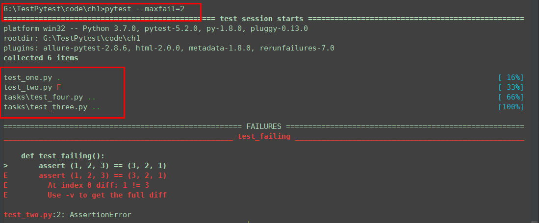 5、--maxfail=num 明确执行几次失败后停止(num代表次数)