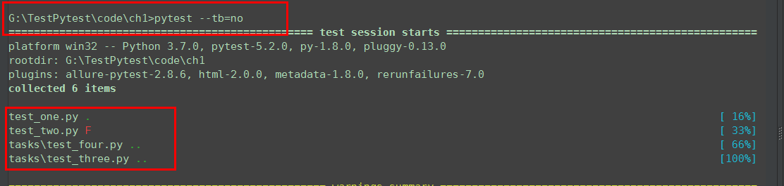 6、--tb=no 关闭错误堆栈回溯,用例显示运行失败,失败的信息不展示了