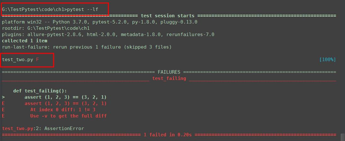 7、--lf(--last-faied) 定位到最后一个失败的测试用例重新运行