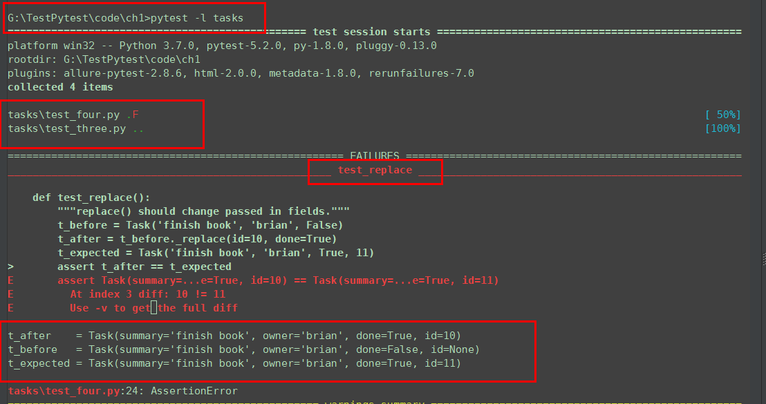 11、-l (--showlocals)选项是失败测试用例由于被堆栈追踪,所以局部变量及其值都会显示出来