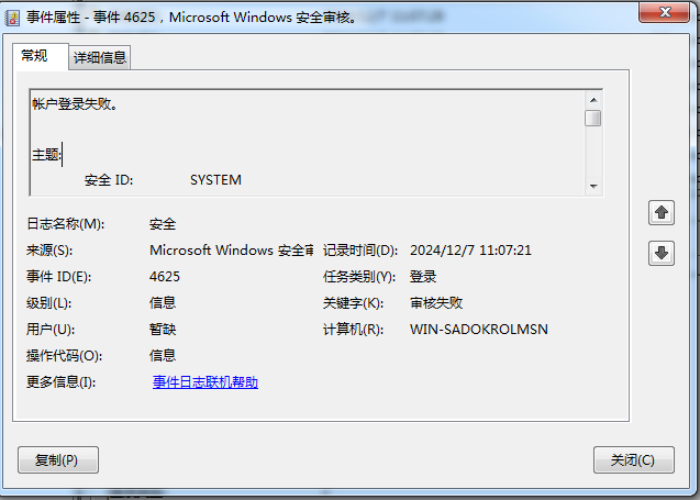 这个事件是登录失败、密码错误的EventTrace事件,但是在win7上却看不到,win10是正常的。