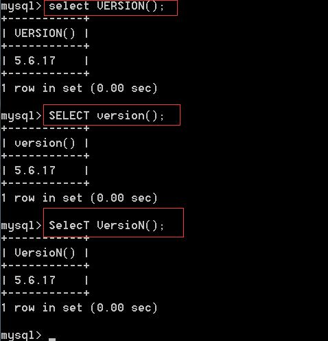 关键字和函数名不区分字母的大小写。如、abs、bin、now、version、floor等函数、SELECT、WHERE、ORDER、GROUP BY等关键字。
