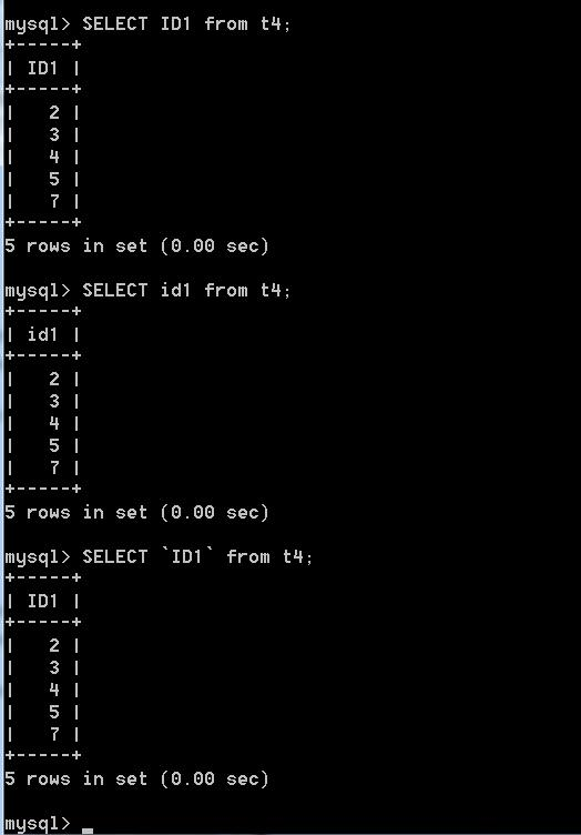3、列名与列的别名在所有的情况下均是忽略大小写的;
