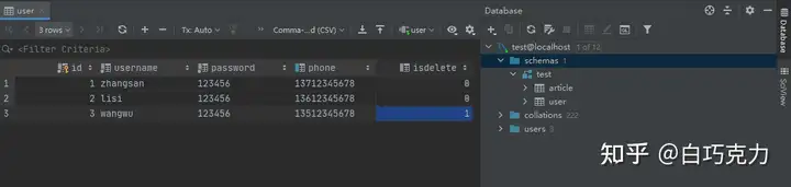 在运行我们Flask项目前,我们先在user添加几条数据,如下图所示: