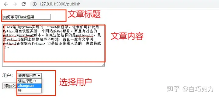 添加数据后,我们在终端执行app.py,并在浏览器中打开http://127.0.0.1:5000/publish,如下图所示: