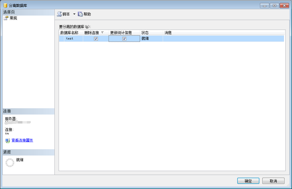 选择下方ldf文件哪一行,右下角点击删除,再点击确定,系统就会自动帮我们重新生成日志文件