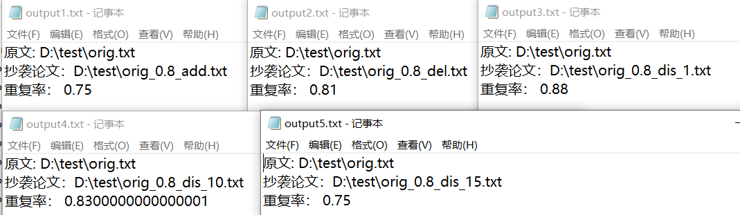 | 这个作业的目标 | 设计一个论文查重算法,给出一个原文文件和一个在一个在这份原文上经过了增删改的抄袭论文的文件,在答案文件中输出其重复率 |