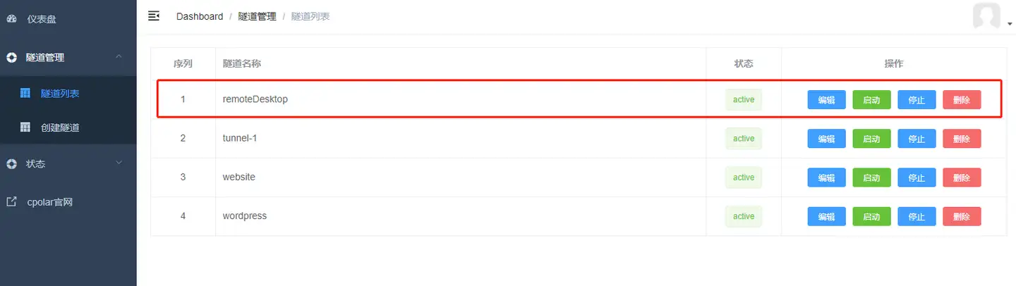 - 登录cpolar web UI界面,启动远程桌面隧道