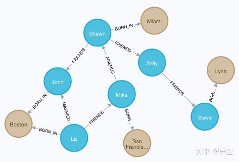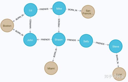 这个案例的节点主要包括人物和城市两类,人物和人物之间有朋友、夫妻等关系,人物和城市之间有出生地的关系。