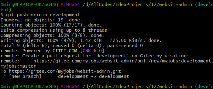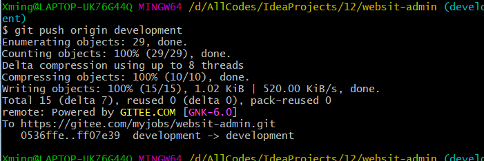 5、提交代码第五步:git push <远程主机名> <远程分支名> 把当前提交到git本地仓库的代码推送到远程主机的某个远程分支上
