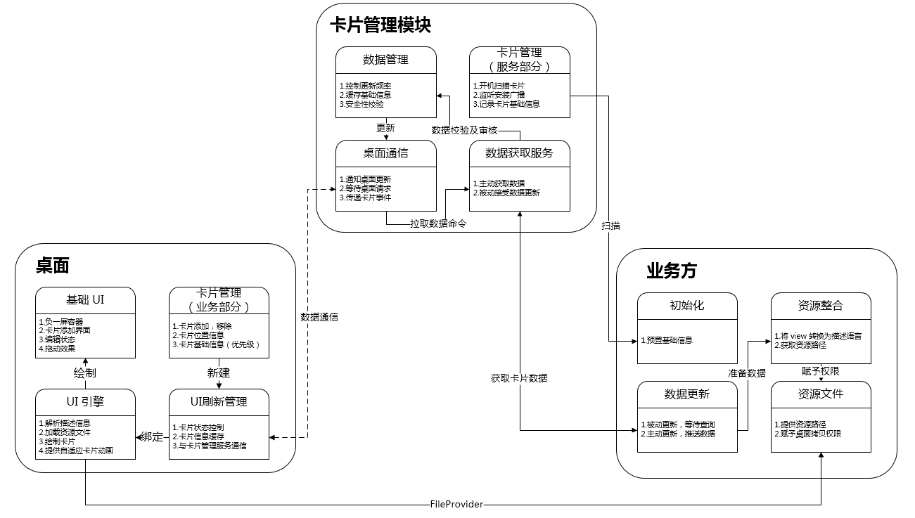 · 卡片业务方:基于标准的接口提供数据信息,处理卡片的生命周期