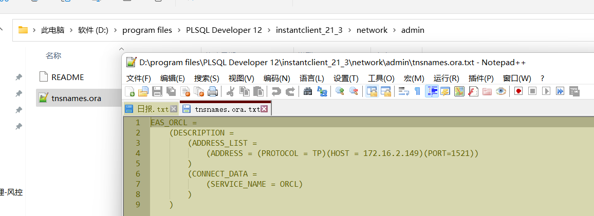 在Instantclient12目录下新建一个network目录,在network目录下再次新建一个admin目录,在admin目录下新建一个文件:tnsnames.ora,在这个文件中放入远程Oracle发来的连接串: