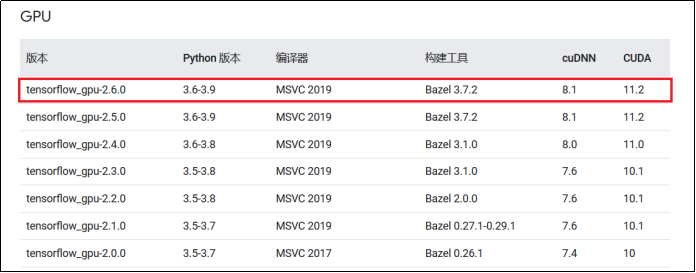 2、查看所需的tensorflow-gup版本对应的cuda版本和cudnn版本