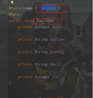 - 已经配置了包扫描,扫描dao 包,实例化dao包中的接口;所以不用在Mapper接口上添加注解了。 - 我们后面 spring boot 整合 通用mapper ,需要添加注解。 - spring boot 基本是0 配置。 - 一、 类与表的对应关系 - 通用mapper 会默认 表的名字跟类的名字一致。 - 类 Employee 表 employee (不区分大小写) 默认 - 类 Employee 表 想变成 tbl_emp 怎么办?