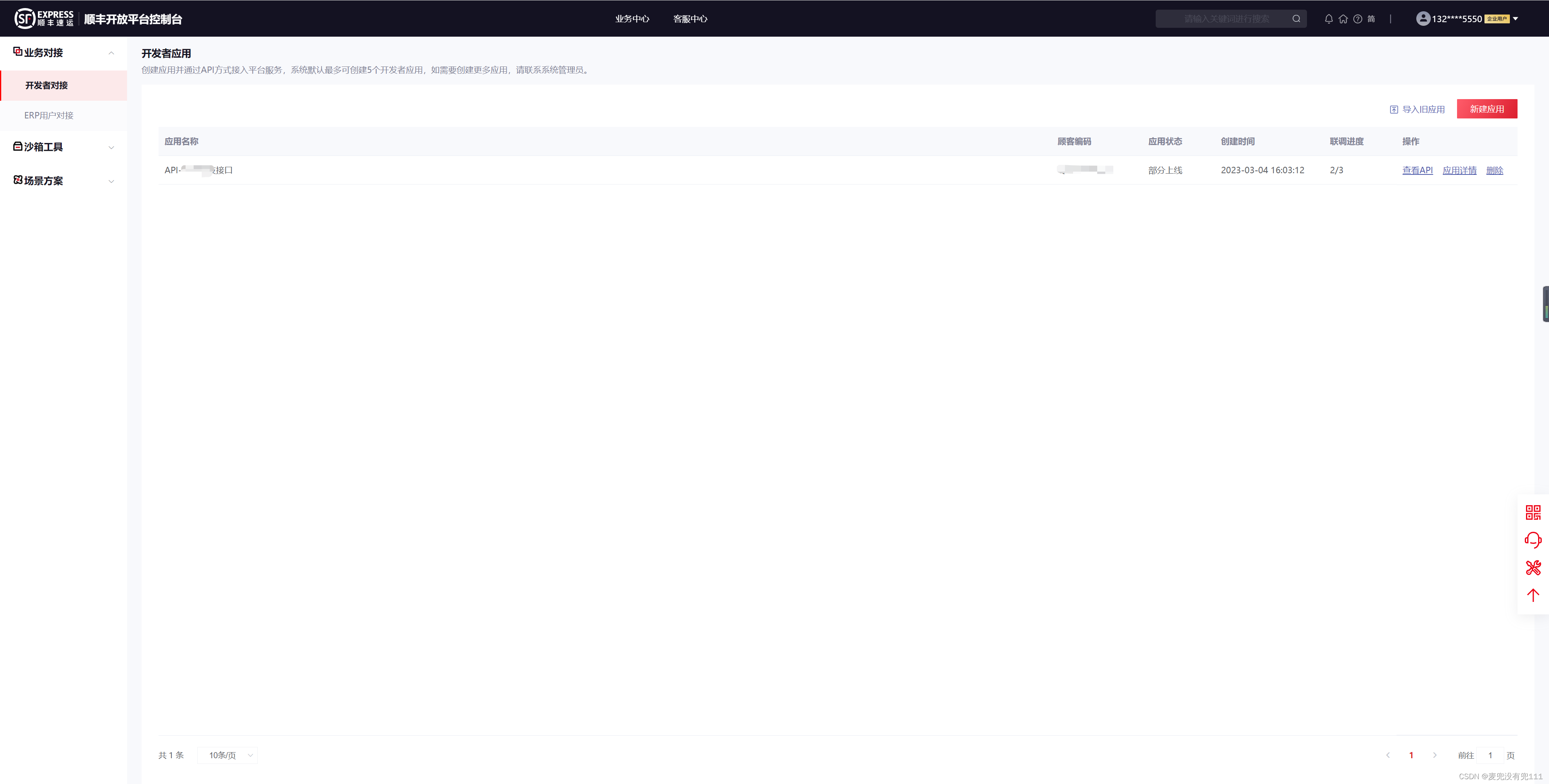 第一次进来是需要创建一个自己的应用的具体的细节可以参考一下文档,我这边就不在进行讲解了:顺丰开放平台