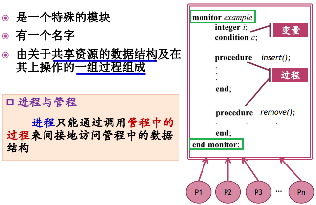 D、进程只能调用管程提供的过程对管程中的数据结构进行处理