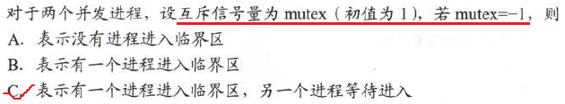 互斥量<0,表示临界区有一个进程,互斥量的绝对值表示在临界区外等待进入的进程数