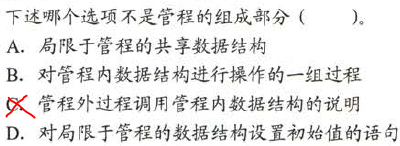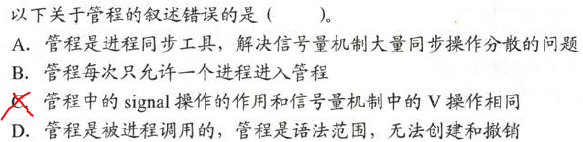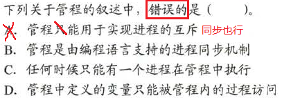 A、管程中需要提供互斥量以保证管程的互斥性(管程的互斥性由编译器负责)