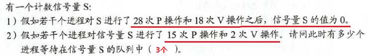 S - 15 + 2 = 10 - 15 + 2 = -3,表示有3个进程在队列中等待。