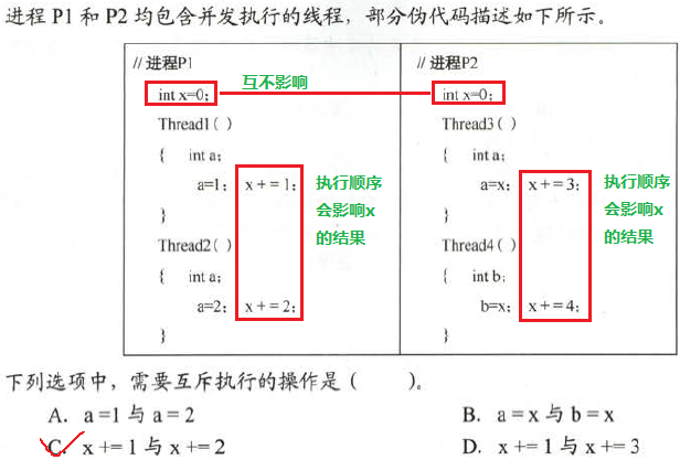 5、下列描述的四个现象中,哪一项既具有同步关系又具有互斥关系?