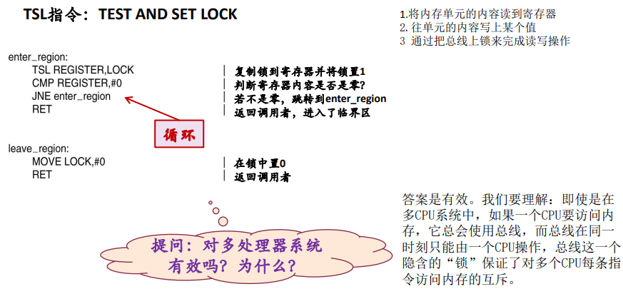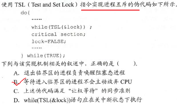 11、用“测试并加锁”(TSL)指令解决进程互斥进入临界区的解决方案不适用于多处理器。(F)
