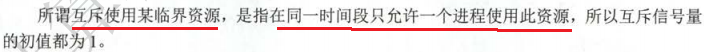 互斥资源:缓冲区只能互斥访问,因此设置互斥信号量mutex,初始值为1