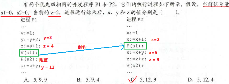 semaphore mutex_z = 1; //用于对变量z的互斥访问