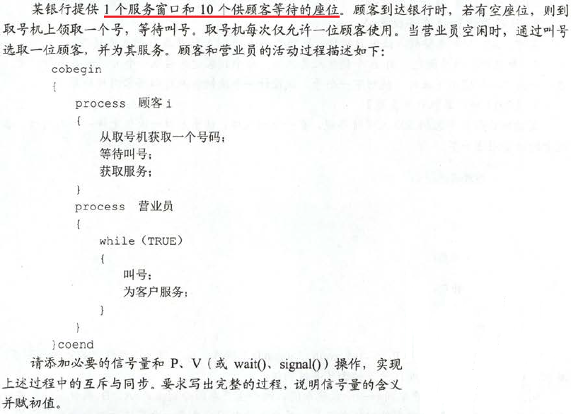 P(full); //申请一个顾客,没有则休息V(service); //叫号;