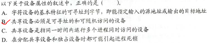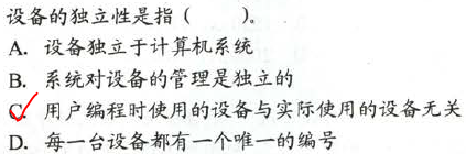 A、设备管理使用户能独立于具体设备的复杂物理特性而方便地使用设备