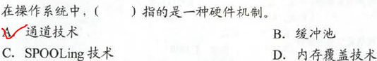 1、下列I/O控制方式中,哪一个不需要硬件支持?