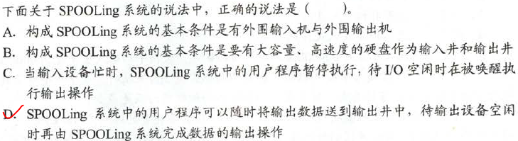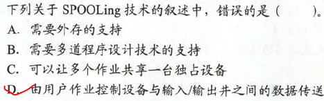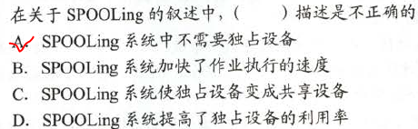 3、下列关于SPOOLing技术的叙述中,哪一个是错误的?