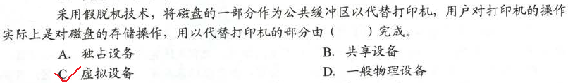 A、虚设备技术是指在一类设备上模拟另一类设备的技术