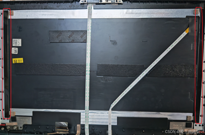将电脑打开约 45°,放置于桌面上,从拐角处使用塑料撬片开一点口。顺着开口就能比较容易的拆下 D壳,实在没有工具 长指甲也可以。