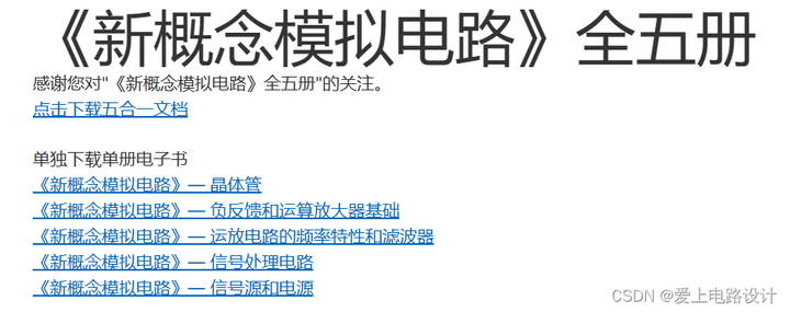 下载地址:《新概念模拟电路》全五册。