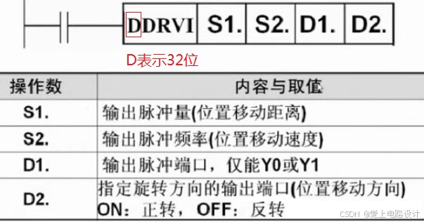下面的程序较为通用。DDRVI为32位指令,那么其后面的S1.与S2.则应为32位。注意:DMOV是32位数据,D200与D201存储脉冲数,D202与D203存储频率。