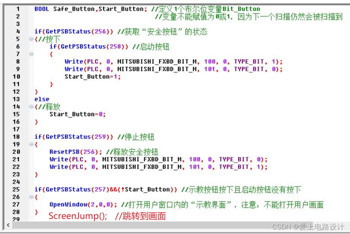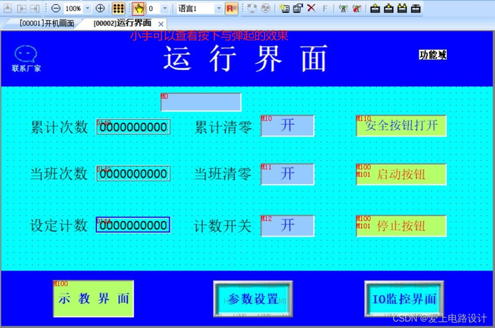 详细的 PLC 与触摸屏程序移步:三菱PLC与信捷触摸屏程序。